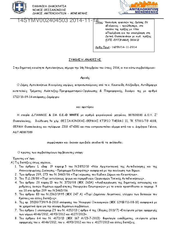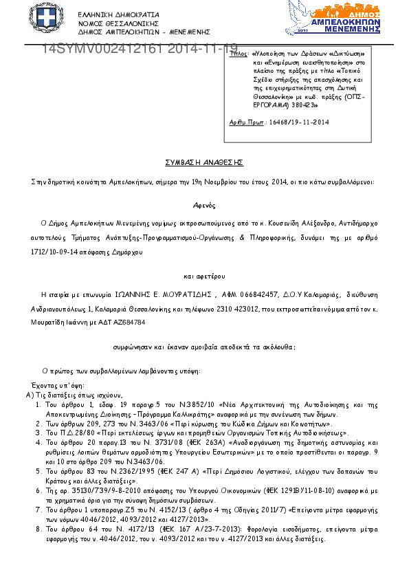 Αναζήτηση σε προκηρύξεις και συμβάσεις για: