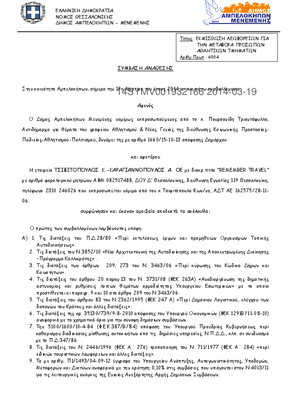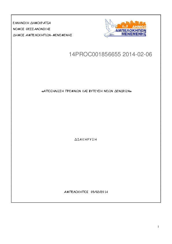 3. Περίληψη διακήρυξης για την ανάθεση των υπηρεσιών "«Απομάκρυνσης ανεπιθύμητης αυτοφυούς βλάστησης ελεύθερων χώρων του δήμου Αμπελοκήπων Μενεμένης»