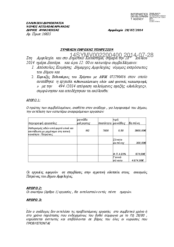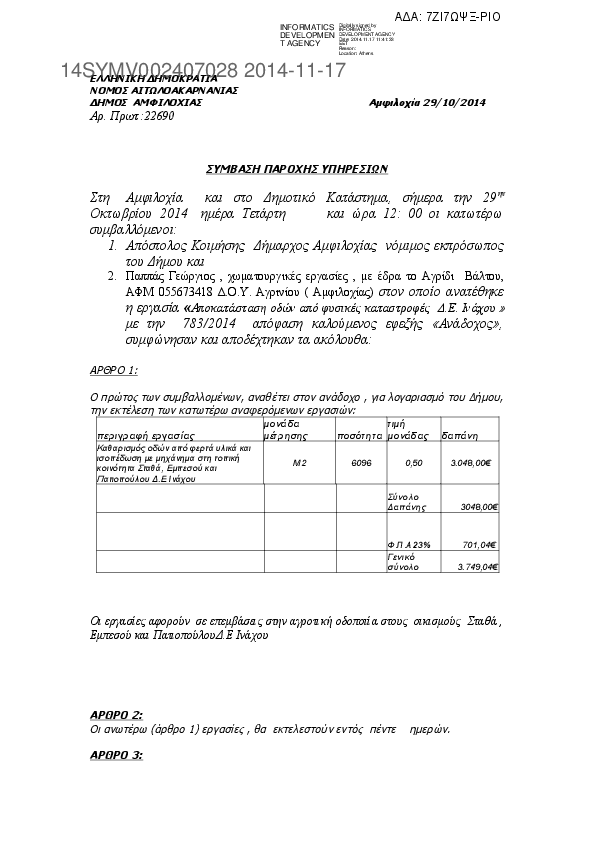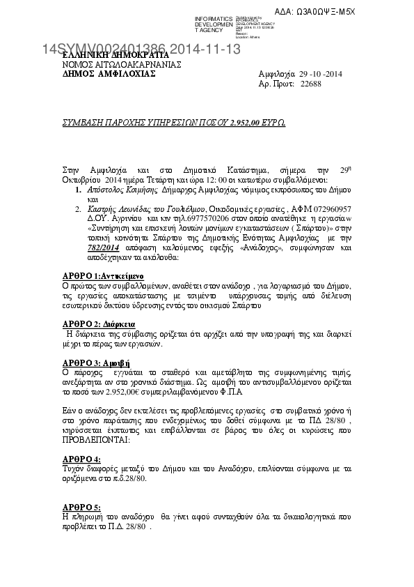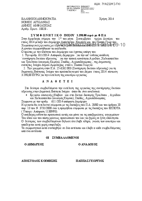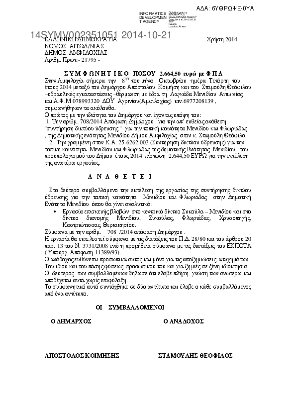 6. Σύμβαση για συντήρηση δικτύου ύδρευσης (Δ.Ε. Μενιδίου)