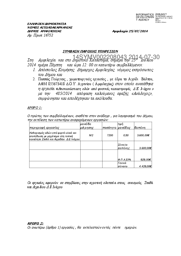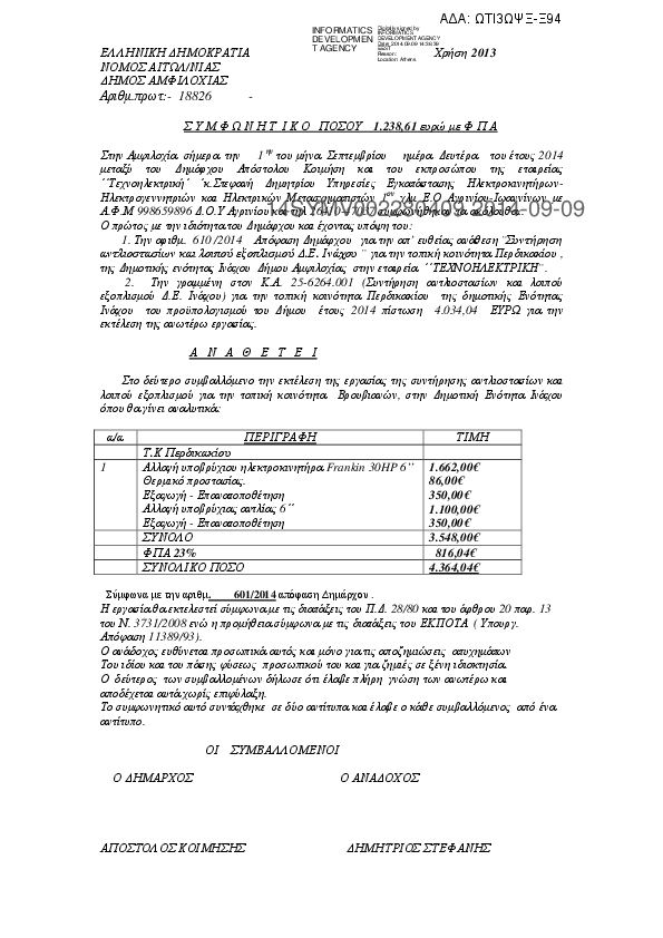 4. Σύμβαση για συντήρηση αντλιοστασίου και λοιπού εξοπλισμού Δ.Ε. Ινάχου Τ.Κ. Περδικακίου
