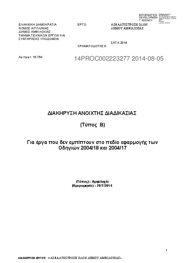 Αναζήτηση σε προκηρύξεις και συμβάσεις για: