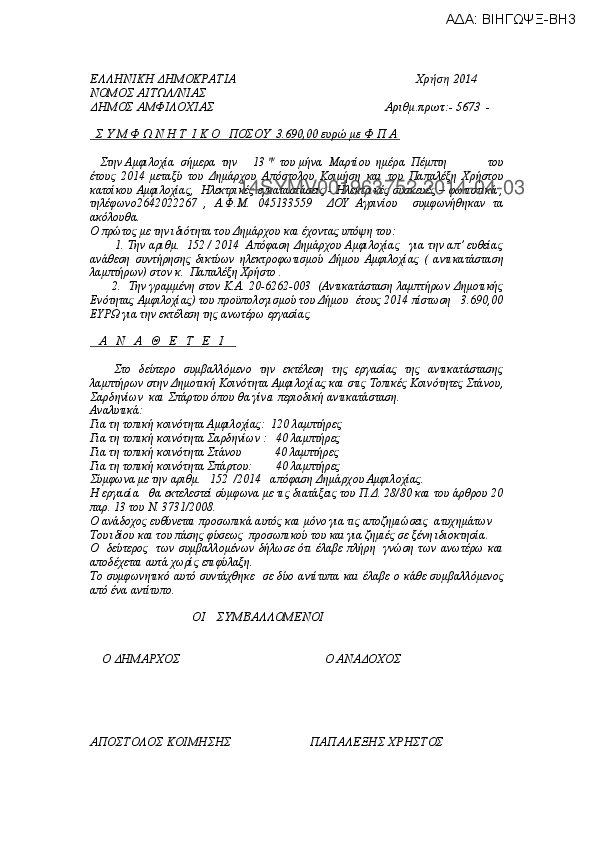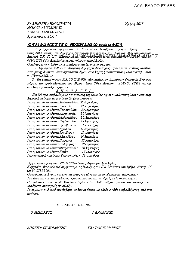 8. ΑΝΤΙΚΑΤΑΣΤΑΣΗ ΛΑΜΠΤΗΡΩΝ ΣΤΗ Δ.Ε ΑΜΦΙΛΟΧΙΑΣ