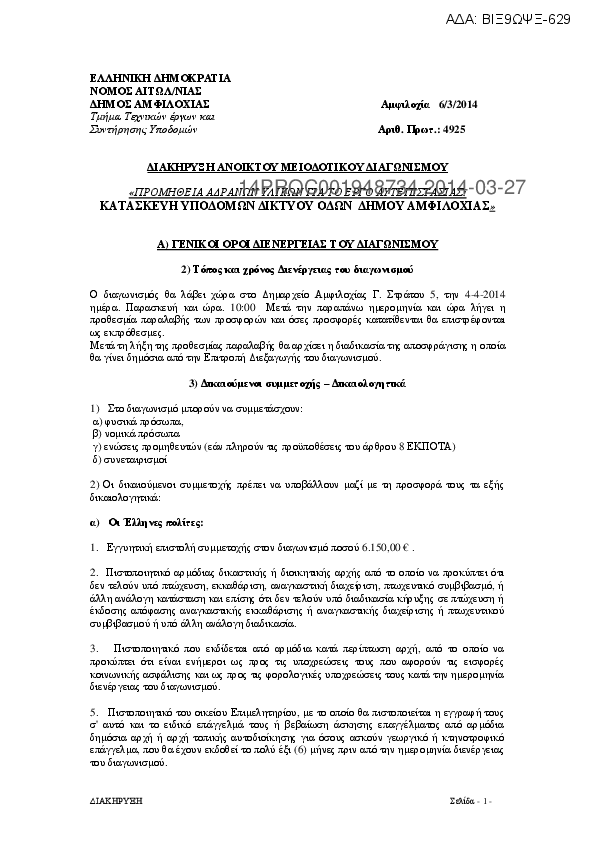 9. ΠΡΟΜΗΘΕΙΑ ΑΔΡΑΝΩΝ ΥΛΙΚΩΝ ΓΙΑ ΤΟ ΕΡΓΟ ΑΥΤΕΠΙΣΤΑΣΙΑΣ: ΚΑΤΑΣΚΕΥΗ ΥΠΟΔΟΜΩΝ ΔΙΚΤΥΟΥ ΟΔΩΝ ΔΗΜΟΥ ΑΜΦΙΛΟΧΙΑΣ