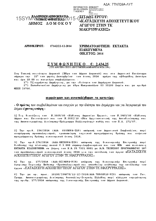 3. ΚΑΤΑΣΚΕΥΗ ΑΠΟΧΕΤΕΥΤΙΚΟΥ ΑΓΩΓΟΥ ΣΤΗΝ ΤΚ ΜΑΚΡΥΡΡΑΧΗΣ
