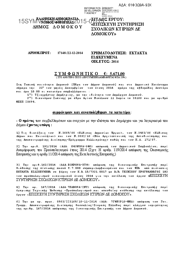 Αναζήτηση σε προκηρύξεις και συμβάσεις για: