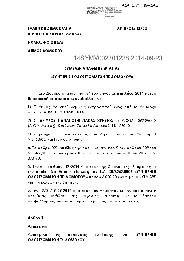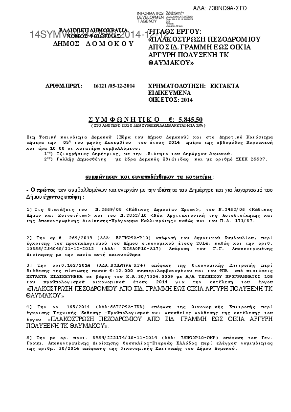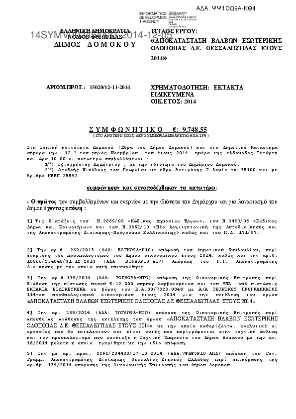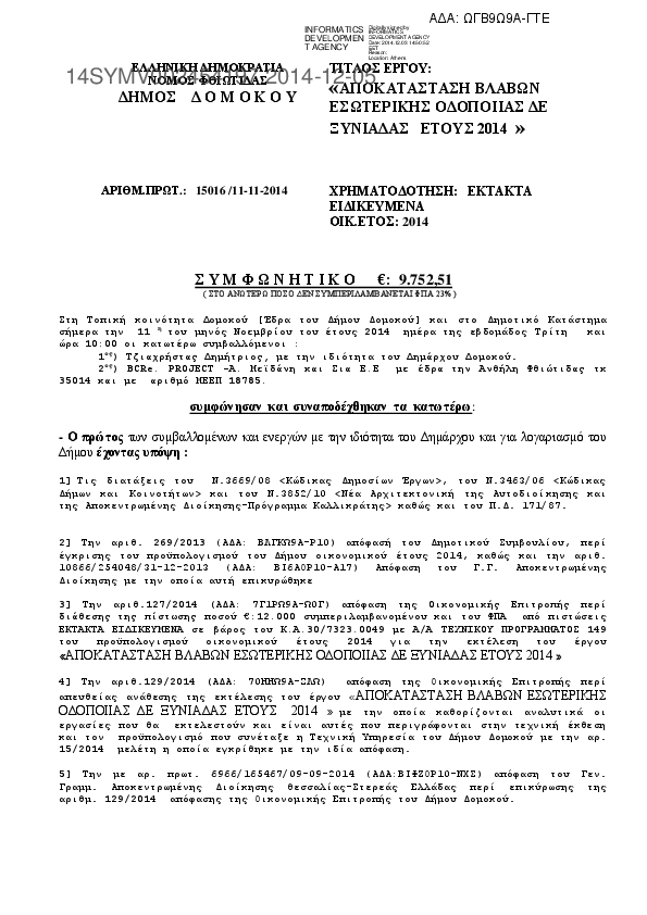 6. ΑΠΟΚΑΤΑΣΤΑΣΗ ΒΛΑΒΩΝ ΕΣΩΤΕΡΙΚΗΣ ΟΔΟΠΟΙΙΑΣ Δ.Ε. ΘΕΣΣΑΛΙΩΤΙΔΑΣ ΕΤΟΥΣ 2014