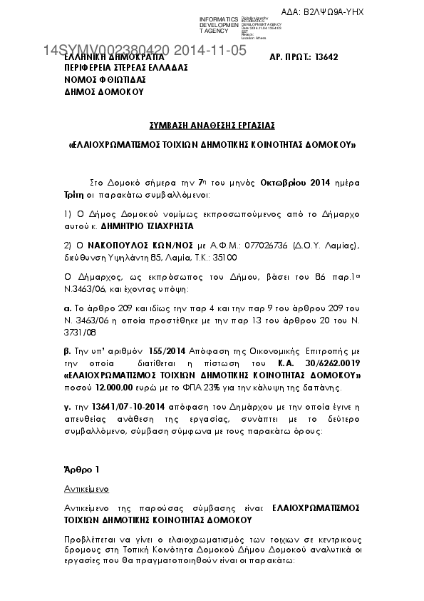 5. EΛΑΙΟΧΡΩΜΑΤΙΣΜΟΣ ΤΟΙΧΙΩΝ ΔΗΜΟΤΙΚΗΣ ΚΟΙΝΟΤΗΤΑΣ ΔΟΜΟΚΟΥ
