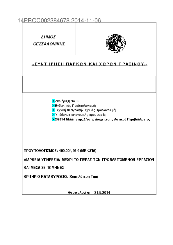 7. ΑΝΑΘΕΣΗ ΕΡΓΑΣΙΑΣ :ΣΥΝΤΗΡΗΣΗ ΠΑΡΚΩΝ ΚΑΙ ΧΩΡΩΝ ΠΡΑΣΙΝΟΥ Δ/ΝΣΗΣ ΔΑΠ