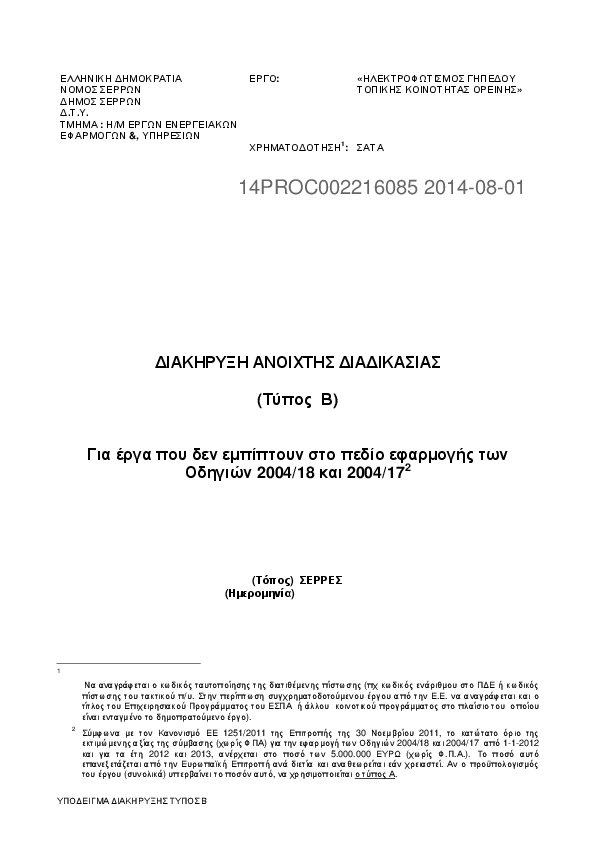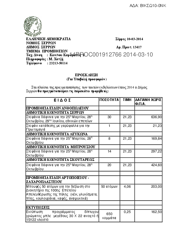 2. ΠΡΟΣΚΛΗΣΗ(Για Υποβολή προσφορών) Στα πλαίσια της πραγματοποίησης των τακτών εκδηλώσεων έτους 2014 ο Δήμος Σερρών θα πραγματοποιήσει προμήθειες