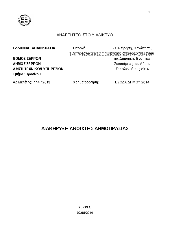 3. Διακήρυξη ανοικτού διαγ π υ :«Συντήρηση, Οργάνωση, Διαχείριση χώρων πρασίνου Δ Ε Σκουτάρεως Σερρών»,