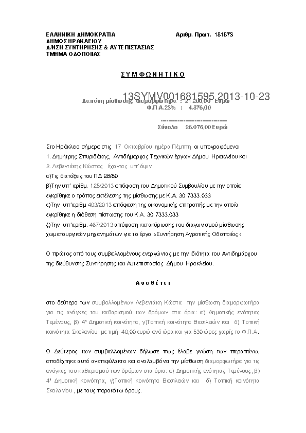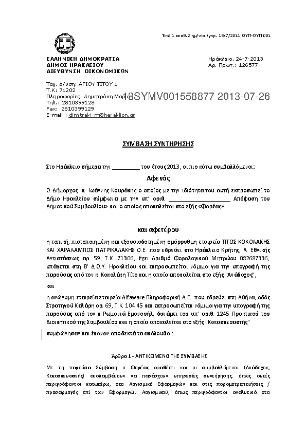 10. ΣΥΜΒΑΣΗ ΣΥΝΤΗΡΗΣΗΣ ΠΡΟΓΡΑΜΜΑΤΟΣ ΟΙΚΟΝΟΜΙΚΗΣ ΥΠΗΡΕΣΙΑΣ ΚΑΙ ΜΙΣΘΟΔΟΣΙΑΣ ΤΟΥ ΔΗΜΟΥ ΗΡΑΚΛΕΙΟΥ