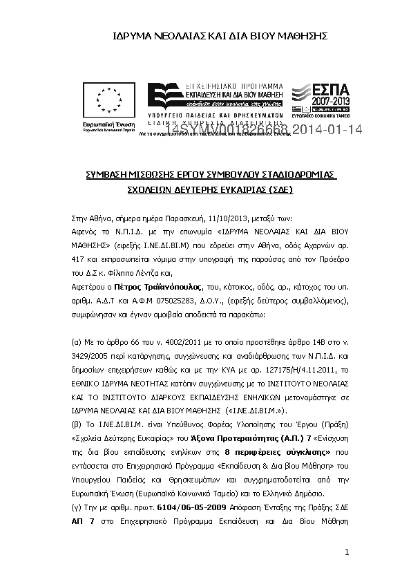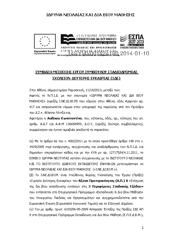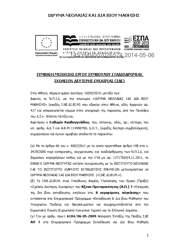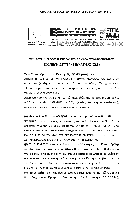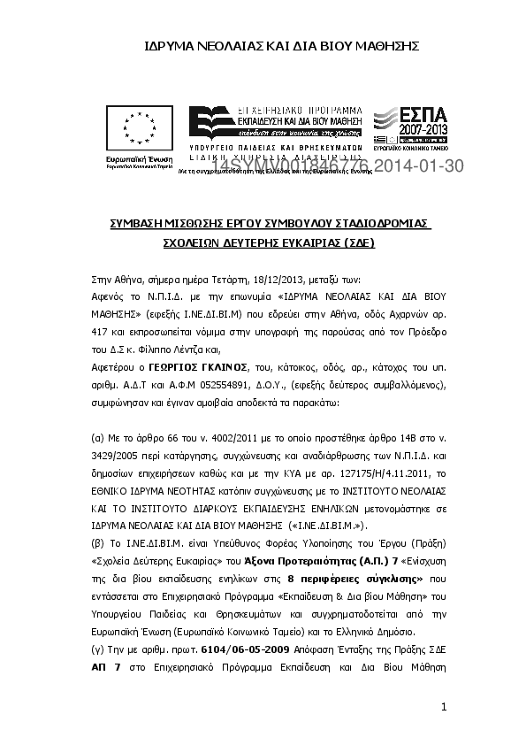 1. ΣΥΜΒΑΣΗ ΜΙΣΘΩΣΗΣ ΕΡΓΟΥ ΣΥΜΒΟΥΛΟΥ ΣΤΑΔΙΟΔΡΟΜΙΑΣ ΣΔΕ ΑΠ 7