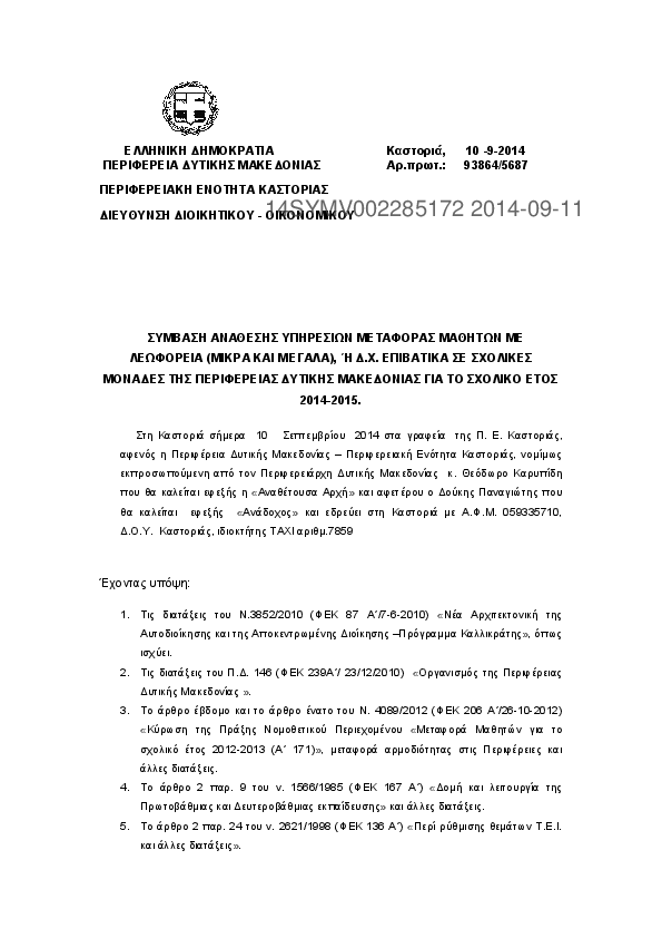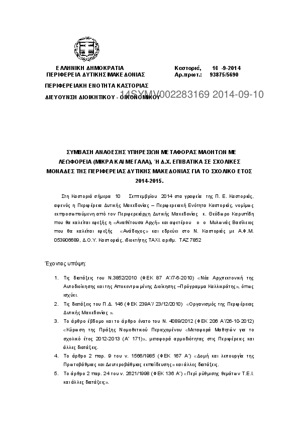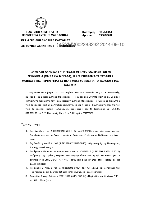 5. ΣΥΜΒΑΣΕΙΣ ΜΕΤΑΦΟΡΑΣ ΜΑΘΗΤΩΝ ΣΧΟΛΙΚΟΥ ΕΤΟΥΣ 2014-2015