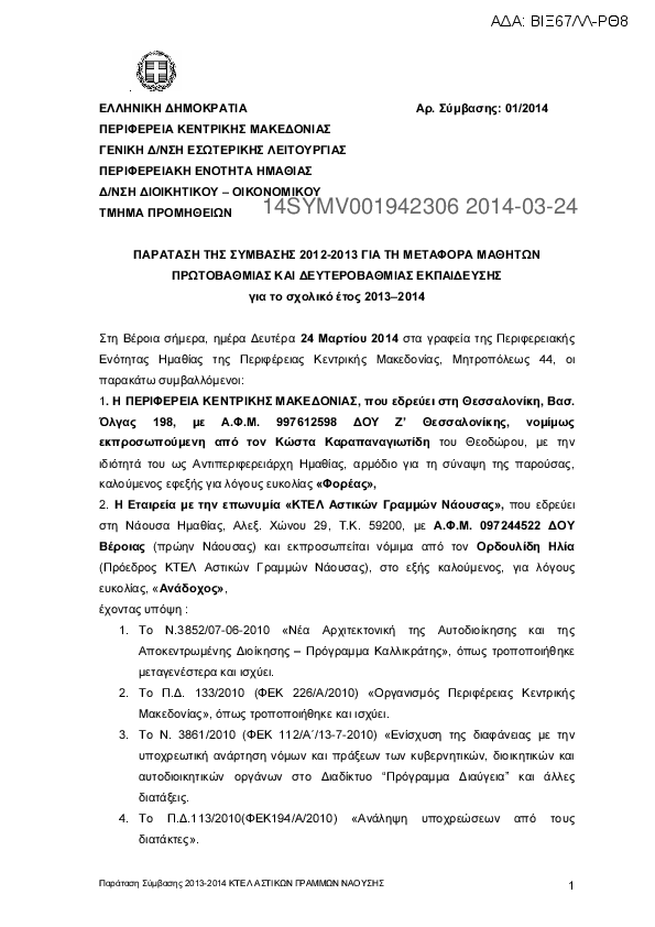 4. ΠΑΡΑΤΑΣΗ ΣΥΜΒΑΣΗΣ 2012-13 ΜΕΤΑΦΟΡΑΣ ΜΑΘΗΤΩΝ A/ΘΜΙΑΣ & B/ΘΜΙΑΣ ΕΚΠ/ΣΗΣ ΑΠΟ 13-09-13 ΕΩΣ 30-06-14