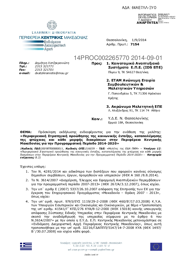 10. Πρόσκληση "Σύμβ. Υποστ/ξης Περιφερειακού Σχεδιασμού για την Κοινωνική Ενσωμάτωση των Ρομά στην ΠΚΜ"