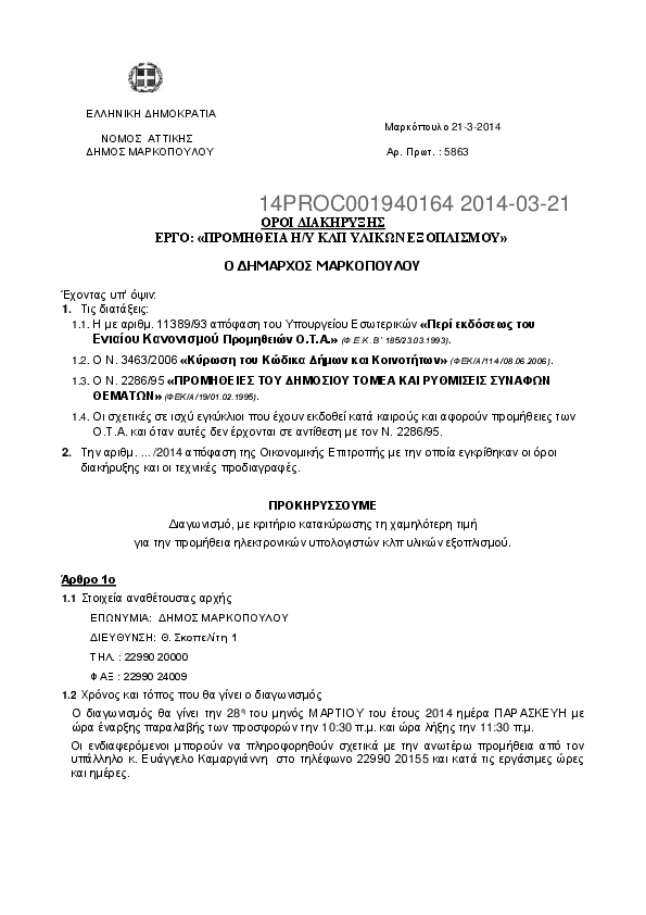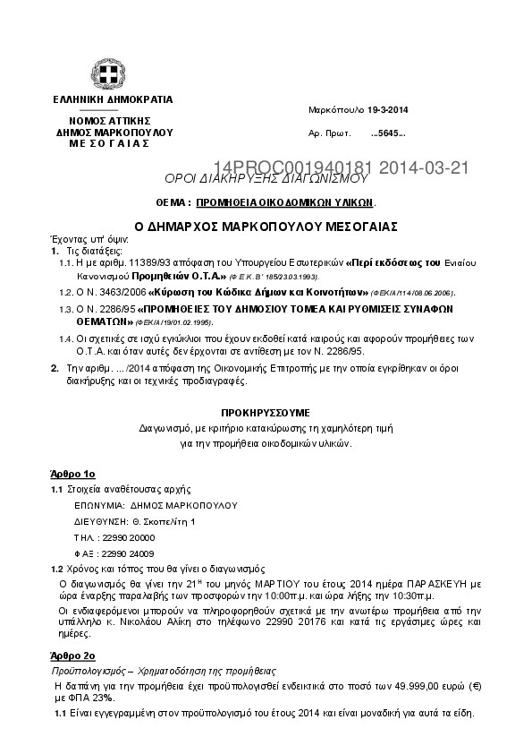 Αναζήτηση σε προκηρύξεις και συμβάσεις για: