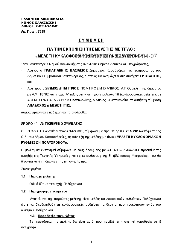 1. ΜΕΛΕΤΗ ΚΥΚΛΟΦΟΡΙΑΚΩΝ ΡΥΘΜΙΣΕΩΝ ΠΟΛΥΧΡΟΝΟΥ