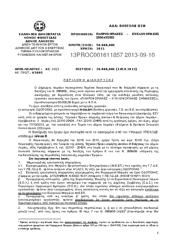 1. ΠΕΡΙΛΗΨΗ ΔΙΑΚΗΡΥΞΗΣ ΕΡΓΟΥ "ΠΛΗΡΟΦΟΡΙΑΚΕΣ – ΚΥΚΛΟΦΟΡΙΑΚΕΣ ΣΗΜΑΝΣΕΙΣ"