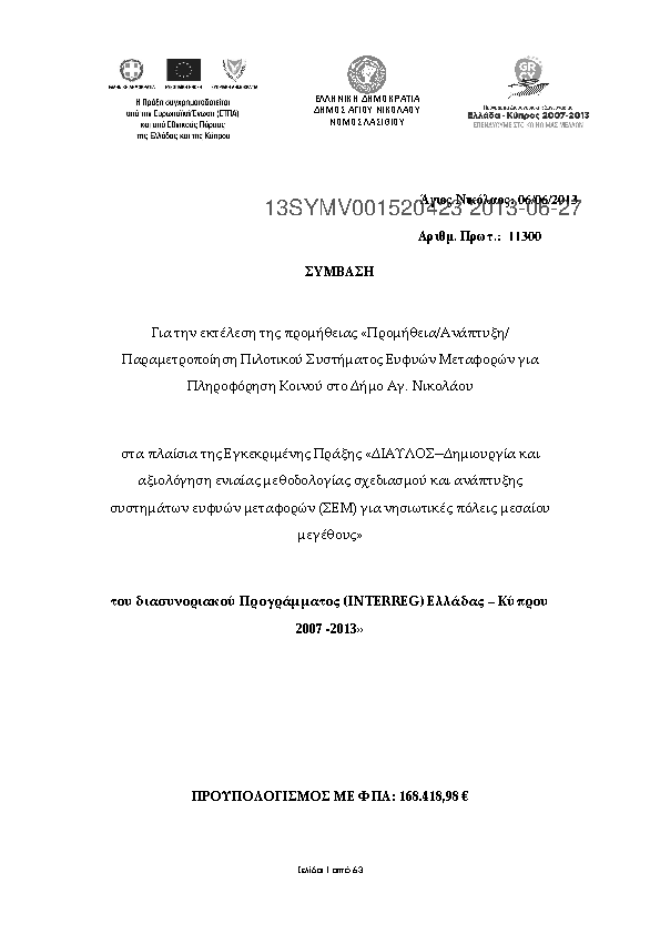 1. Προμήθεια/Aνάπτυξη/ Παραμετροποίηση Πιλοτικού Συστήματος Ευφυών Μεταφορών για Πληροφόρηση Κοινού στο
