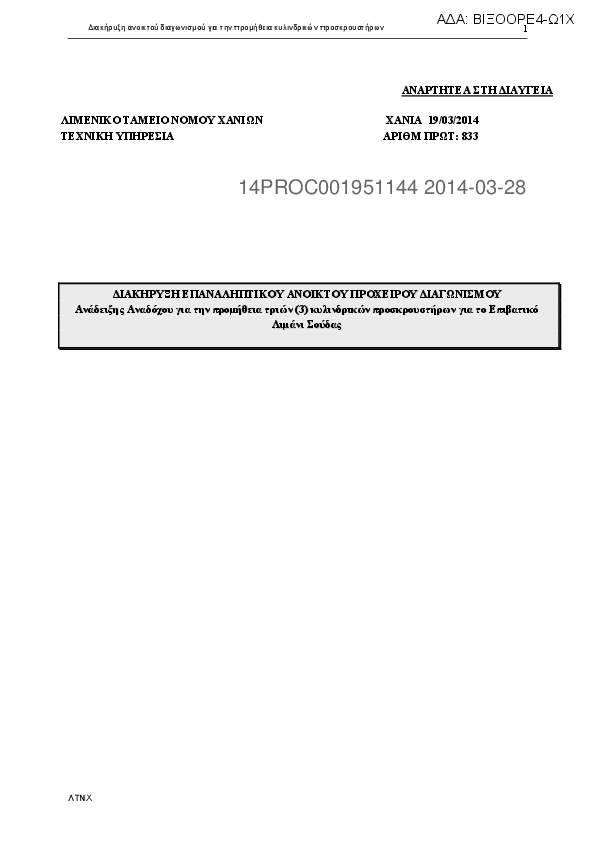 7. ΠΡΟΧΕΙΡΟΣ ΔΙΑΓΩΝΙΣΜΟΣ ΓΙΑ ΤΗΝ ΠΡΟΜΗΘΕΙΑ ΤΡΙΩΝ ΚΥΛΙΝΔΡΙΚΩΝ ΠΡΟΣΚΡΟΥΣΤΗΡΩΝ ΓΙΑ ΤΟ ΛΙΜΑΝΙ ΣΟΥΔΑΣ