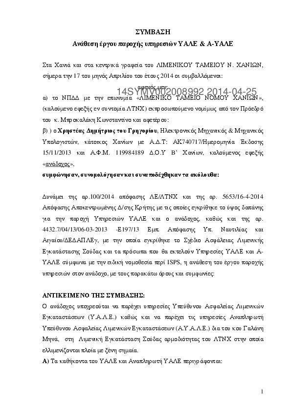 5. Παροχή υπηρεσιών ΥΑΛΕ και ΑΥΑΛΕ για ένα έτος για την Λιμενική Εγκατάσταση Σούδας, αρμοδιότητας ΛΤΝΧ