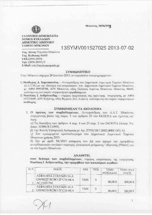 1. Περί της τροποποίησης της μελέτης «Παροχή Υπηρεσιών Ασφάλειας Λιμενικών Εγκαταστάσεων Μυκόνου» και έγκρισης των όρων του διαγωνισμού