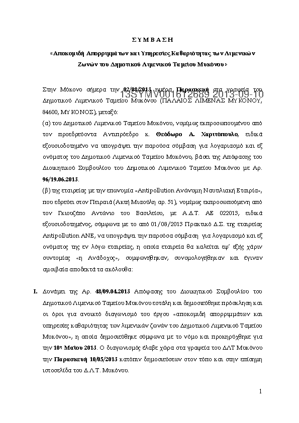 2. Αποκομιδή Απορριμμάτων και Υπηρεσίες Καθαριότητας των Λιμενικών Ζωνών του Δ.Λ.Τ. Μυκόνου