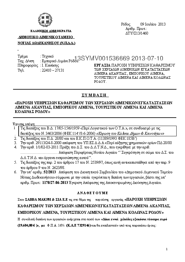 10. ΠΑΡΟΧΗ ΥΠΗΡΕΣΙΩΝ ΚΑΘΑΡΙΣΜΟΥ ΤΩΝ ΧΕΡΣΑΙΩΝ ΛΙΜΕΝΙΚΩΝ ΕΓΚΑΤΑΣΤΑΣΕΩΝ ΛΙΜΕΝΑ ΑΚΑΝΤΙΑΣ , ΕΜΠΟΡΙΚΟΥ ΛΙΜΕΝΑ