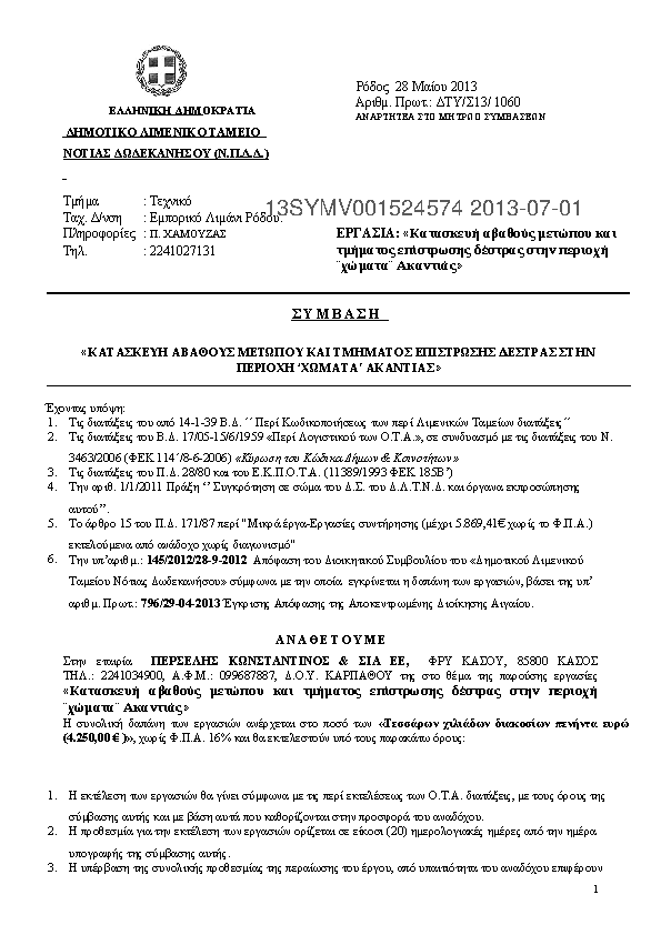 9. ΑΝΑΘΕΣΗΣ ΤΗΣ ΜΕΛΕΤΗΣ «ΔΙΑΜΟΡΦΩΣΗ ΧΕΡΣΑΙΟΥ ΧΩΡΟΥ ΛΙΜΕΝΩΝ ΤΟΥΡΙΣΤΙΚΟΥ ΚΑΙ ΑΚΑΝΤΙΑΣ (ΚΥΚΛΟΦΟΡΙΑΚΗ ΜΕΛΕΤ