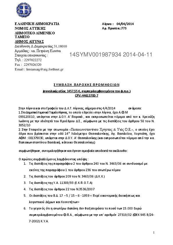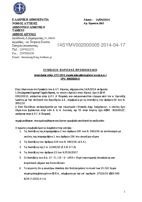 6. ΠΡΟΜΗΘΕΙΑ ΚΑΘΙΣΤΙΚΩΝ ΓΙΑ ΤΟ ΛΙΜΑΝΙΑ ΑΙΓΙΝΑΣ