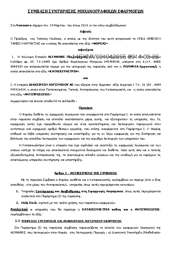 7. παροχή υπηρεσιών Συντήρησης και αναβάθμισης Εφαρμογών Λογισμικού του Δημοτικού Λιμενικού Ταμείου Να