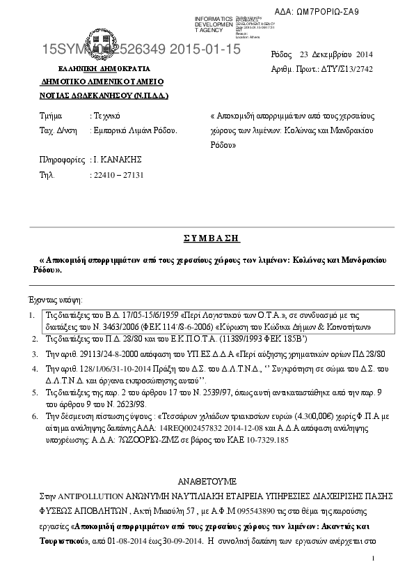 5. ΠΑΡΟΧΗ ΥΠΗΡΕΣΙΩΝ ΓΙΑ ΤΟΝ ΚΑΘΑΡΙΣΜΟ ΤΟΥ ΝΕΟΥ ΚΑΡΝΑΓΙΟΥ ΡΟΔΟΥ, ΤΟΥ ΛΙΜΕΝΑ ΜΑΝΔΡΑΚΙΟΥ ΡΟΔΟΥ ΚΑΙ ΤΟΥ ΛΙ