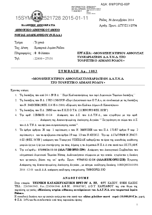 Αναζήτηση σε προκηρύξεις και συμβάσεις για:  Λιμενικό