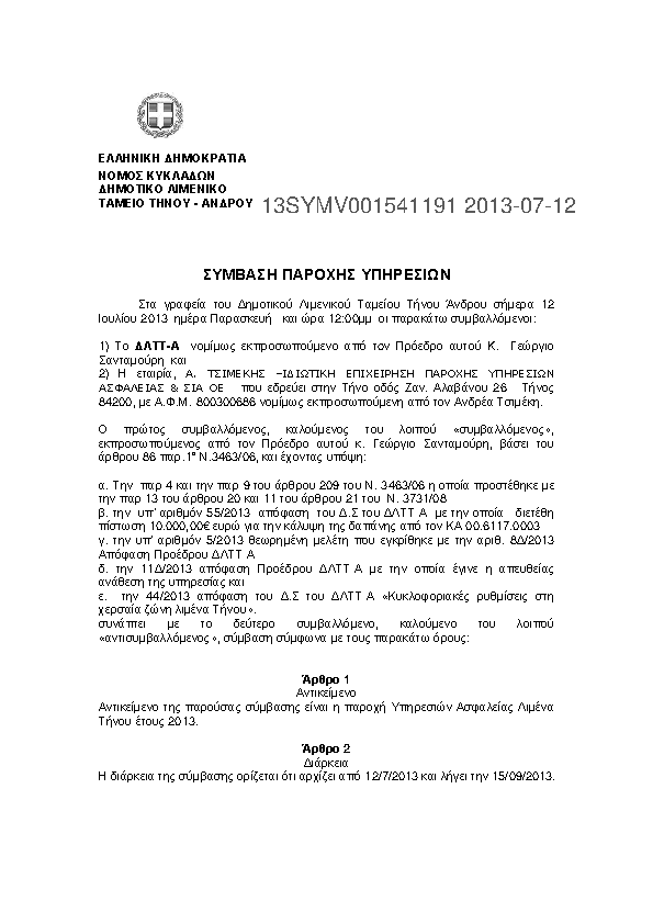 5. ΠΑΡΟΧΗ ΥΠΗΡΕΣΙΩΝ ΑΣΦΑΛΕΙΑΣ ΛΙΜΕΝΑ ΤΗΝΟΥ