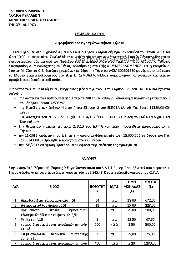 1. ΠΡΟΜΗΘΕΙΑ ΕΛΑΙΟΧΡΩΜΑΤΩΝ Ν. ΤΗΝΟΥ