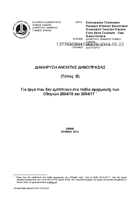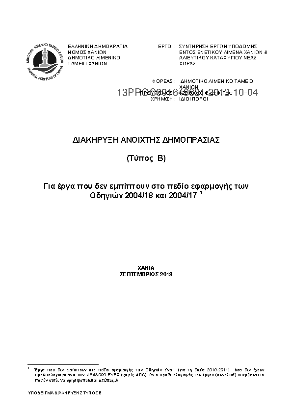 4. ΕΡΓΟ ΑΠΟΚΑΤΑΣΤΑΣΗ ΟΔΟΣΤΡΩΜΑΤΟΣ ΑΠΟ ΕΡΓΑΣΙΕΣ ΔΙΕΛΕΥΣΗΣ ΑΓΩΓΟΥΔΗΜΟΤΙΚΟ ΛΙΜΕΝΙΚΟ ΤΑΜΕΙΟ ΧΑΝΙΩN 271.000,00 € με Φ.Π.Α. ΙΔΙΟΙ ΠΟΡΟΙ ΠΕΡΙΛΗΨΗ ΔΙΑΚΗΡΥΞΗΣ