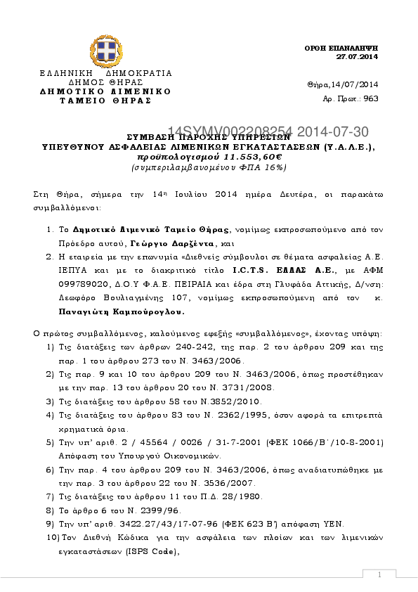 8. Σύμβασης παροχή φοροτεχνικών υπηρεσιών