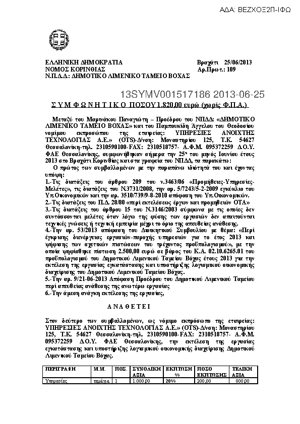 9. Εργασία εγκατάστασης και υποστήριξης λογισμικού οικονομικής διαχείρισης Δημοτικού Λιμενικού Ταμείου