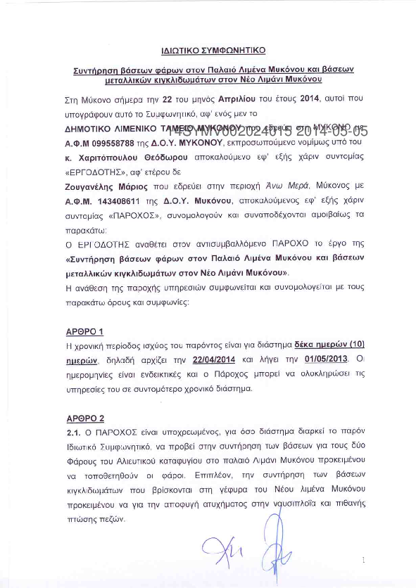 4. ΠΑΡΟΧΗ ΥΠΗΡΕΣΙΩΝ ΑΣΦΑΛΕΙΑΣ ΛΙΜΕΝΙΚΩΝ ΕΓΚΑΤΑΣΤΑΣΕΩΝ ΤΟΥ ΔΗΜΟΤΙΚΟΥ ΛΙΜΕΝΙΚΟΥ ΤΑΜΕΙΟΥ ΜΥΚΟΝΟΥ