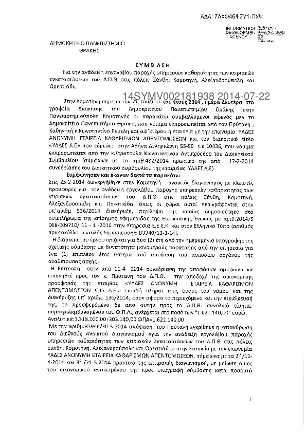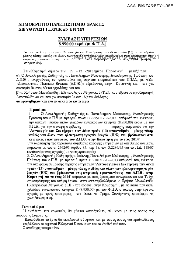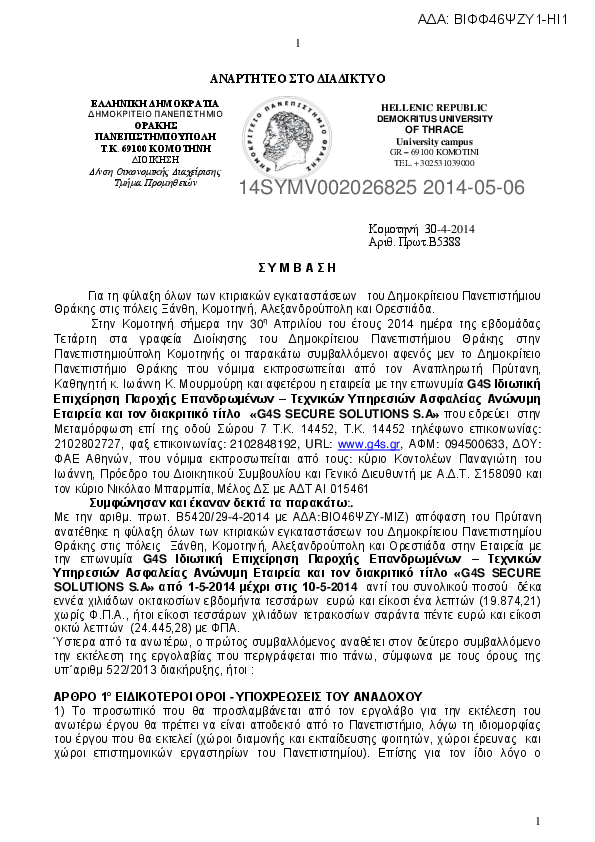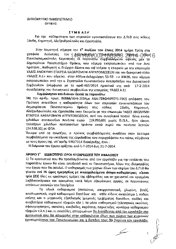 1. Σύμβαση για τη φύλαξη των κτιριακών εγκαταστάσεων του ΔΠΘ