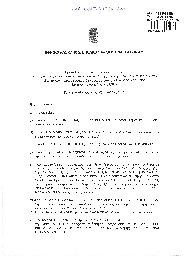 1. Καθαρισμός των εξωτερικών χώρων της Παν/πολης του Ε.Κ.Π.Α.