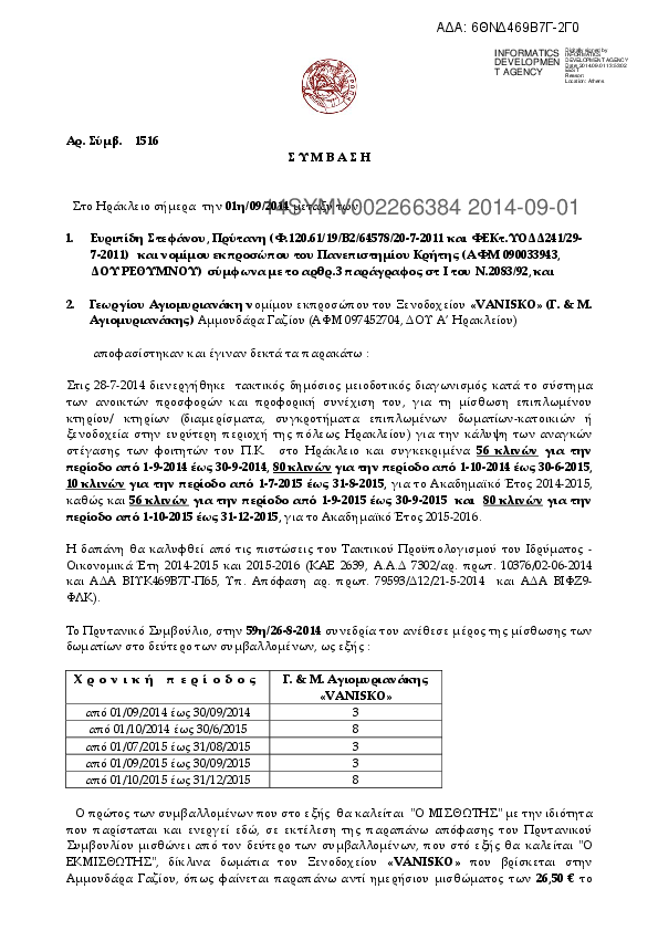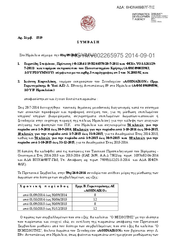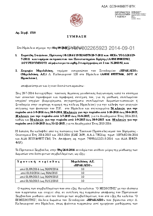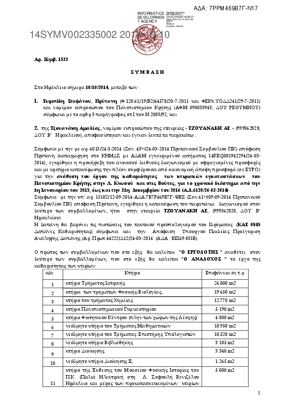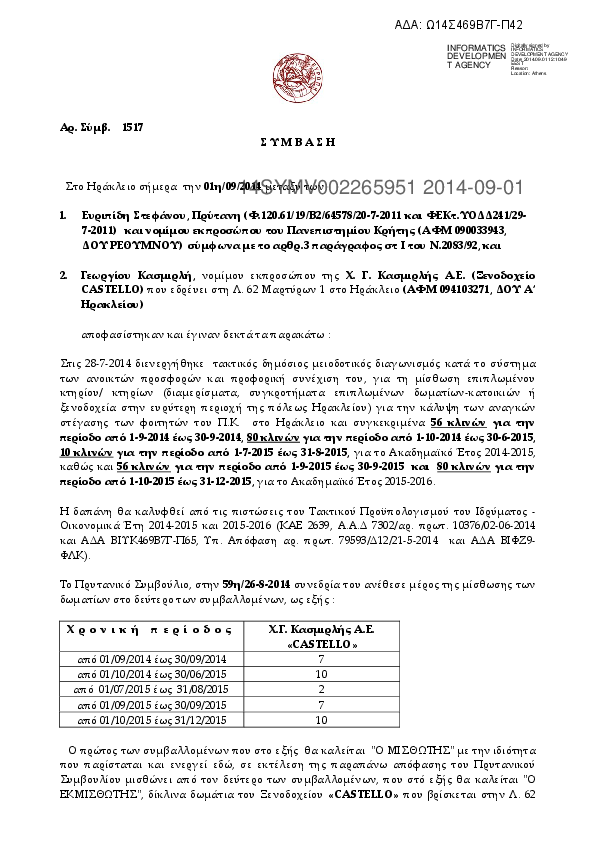 1. Σύμβαση για την προμήθεια και την ανανέωση των συνδρομών περιοδικών της Βιβλιοθήκης Παν.Κρήτης