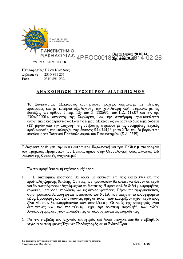 2. ΣΥΝΤΗΡΗΣΗ ΕΓΚΑΤΑΣΤΑΣΕΩΝ ΕΝΕΡΓΗΤΙΚΗΣ ΠΥΡΟΠΡΟΣΤΑΣΙΑΣ ΠΑΝΕΠΙΣΤΗΜΙΟΥ ΜΑΚΕΔΟΝΙΑΣ