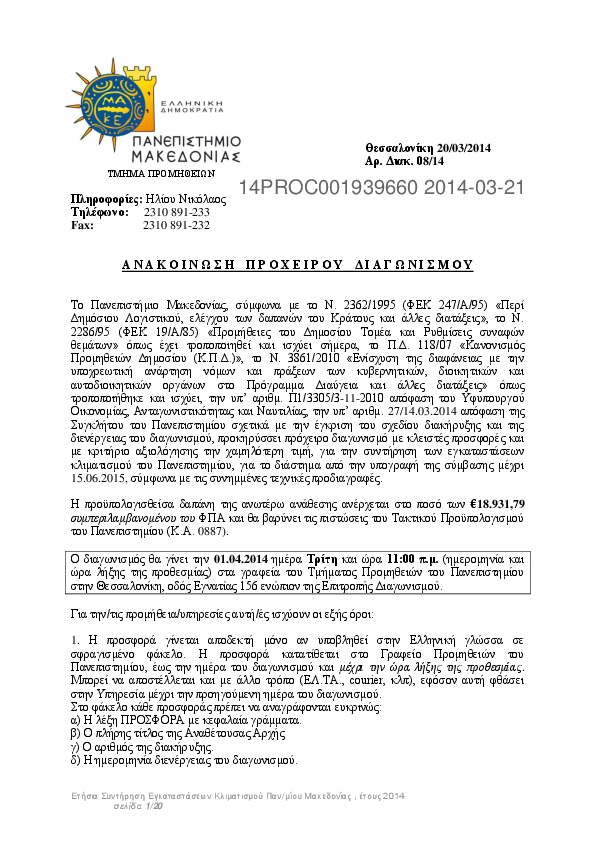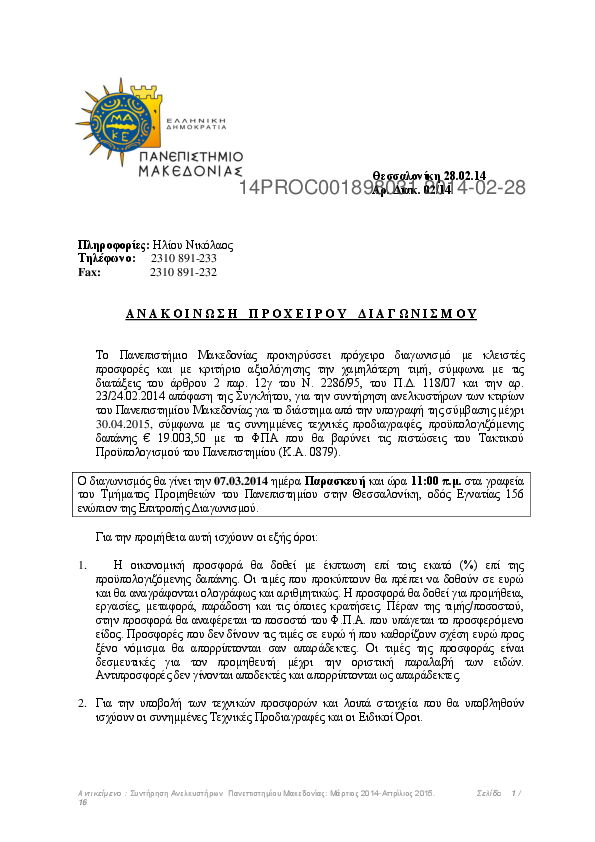 1. ΣΥΝΤΗΡΗΣΗ ΑΝΕΛΚΥΣΤΗΡΩΝ ΠΑΝΕΠΙΣΤΗΜΙΟΥ ΜΑΚΕΔΟΝΙΑΣ