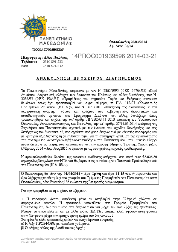 Αναζήτηση σε προκηρύξεις και συμβάσεις για: