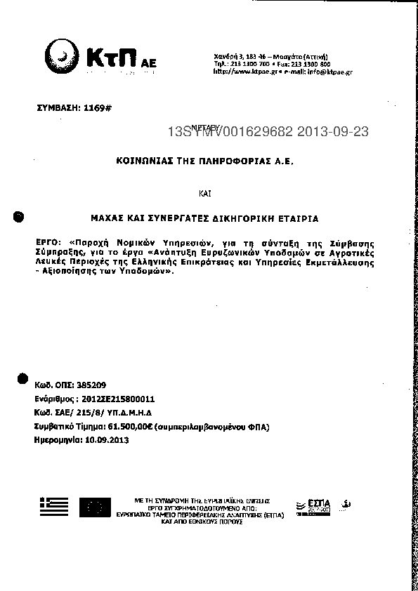 4. Παροχή Νομικών Υπηρεσιών, για τη σύνταξη της Σύμβασης Σύμπραξης, για το έργο «Ανάπτυξη Ευρυζωνικών Υ