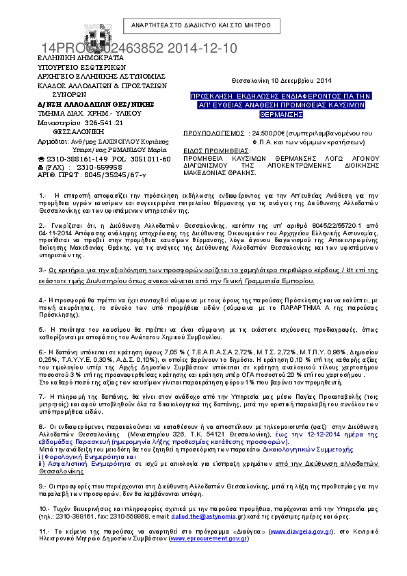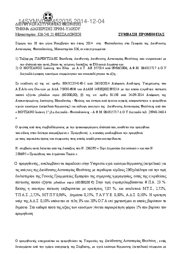 2. ΠΡΟΜΗΘΕΙΑ ΠΕΤΡΕΛΑΙΟΥ ΘΕΡΜΑΝΣΗΣ ΓΙΑ ΤΙΣ ΑΝΑΓΚΕΣ ΤΗΣ Δ/ΝΣΗΣ ΑΣΤΥΝΟΜΙΑΣ ΘΕΣ/ΝΙΚΗΣ