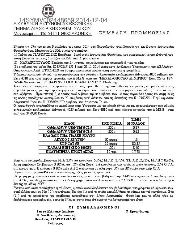 1. ΠΡΟΜΗΘΕΙΑ ΤΗΛΕΠΙΚΟΙΝΩΝΙΑΚΟΥ ΥΛΙΚΟΥ ΓΙΑ ΤΙΣ ΑΝΑΓΚΕΣ ΤΟΥ ΑΣΤΥΝΟΜΙΚΟΥ ΜΕΓΑΡΟΥ ΘΕΣ/ΝΙΚΗΣ