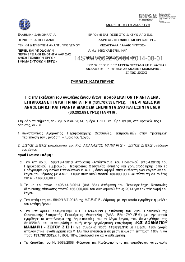 4. ΑΝΟΙΚΤΟΣ ΤΑΚΤΙΚΟΣ ΔΙΑΓΩΝΙΣΜΟΣ (1/2014) ΓΙΑ ΤΗΝ ΚΑΤΑΠΟΛΕΜΗΣΗ ΚΟΥΝΟΥΠΙΩΝ ΣΤΗΝ ΠΕΡΙΦΕΡΕΙΑΚΗ ΕΝΟΤΗΤΑ ΛΑΡΙΣΑΣΓΙΑ ΤΟ ΕΤΟΣ 2014