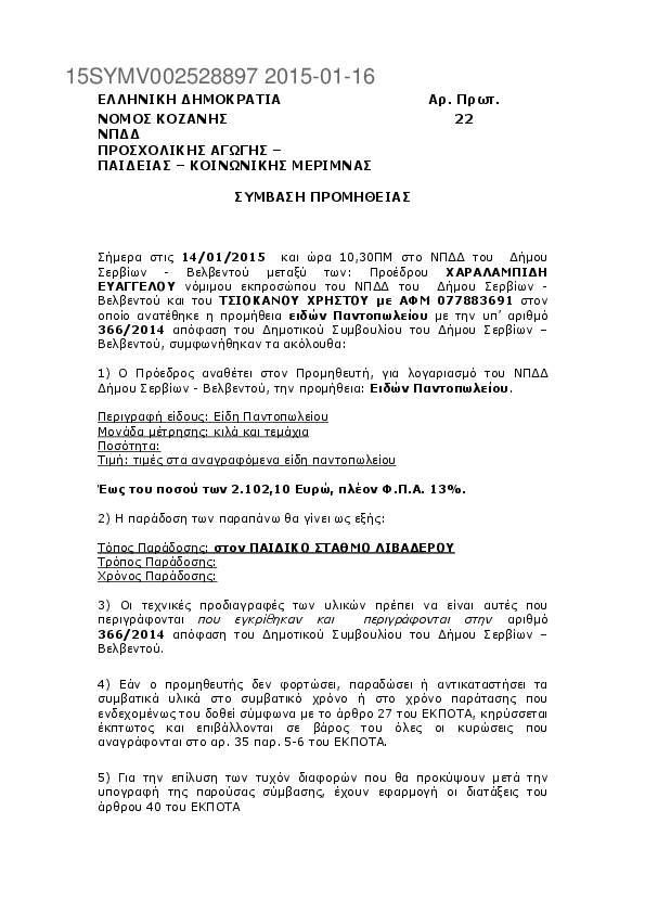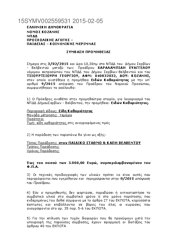 Αναζήτηση σε προκηρύξεις και συμβάσεις για: